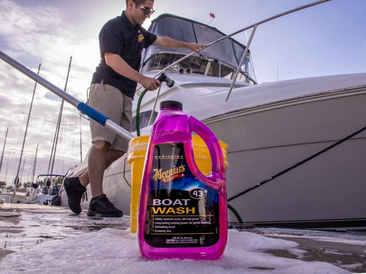 Meguiar's Boat Wash is een nieuwe en gemakkelijke shampoo in een voordelige, grote verpakking, waarmee je je vaartuig eenvoudig kunt wassen.